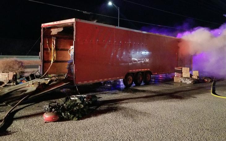 Moving Trailer Destroyed by Fire in the Parking Lot of the Pic-N-Pac