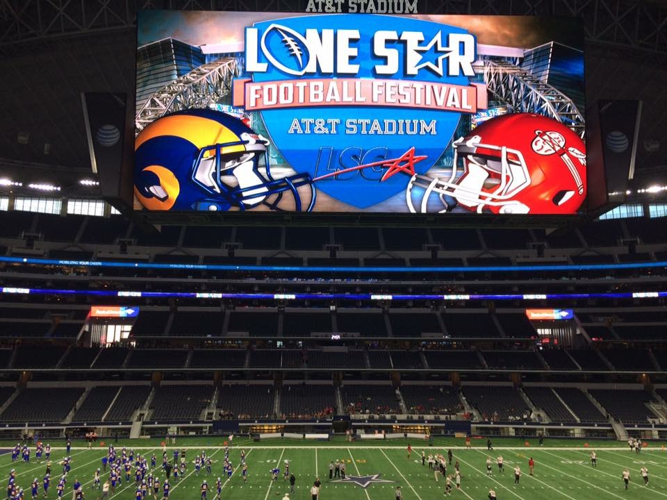 The No. 8 Angelo State Rams football team totaled 508 offensive yards dominating the Bacone Warriors 56-0 in the finale of the Lone Star Football Festival at AT&T Stadium in Arlington Saturday evening. Angelo State competes in the NCAA Division II Lone Star Conference.