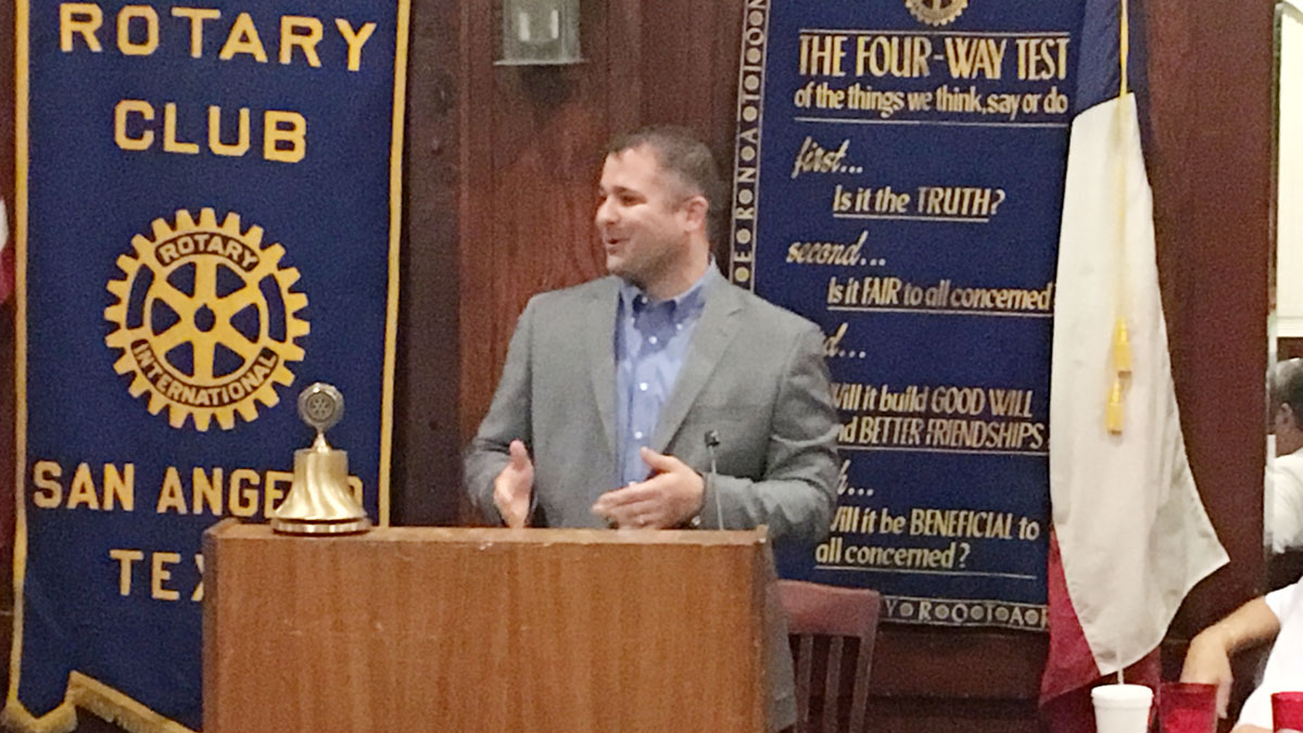 SAN ANGELO, TX — “My name is Cinco Boone, and probably the number one question I get all the time is, ‘Is that your real name?’” Coach Boone said, right after he took to the speaker’s podium last Friday at the weekly meeting of the San Angelo Rotary Club. “My real name is Patrick Henry Boone, V, and, because I’m the fifth generation, they call me ‘Cinco’. Some people thought my mom had five kids, but that’s not it.”