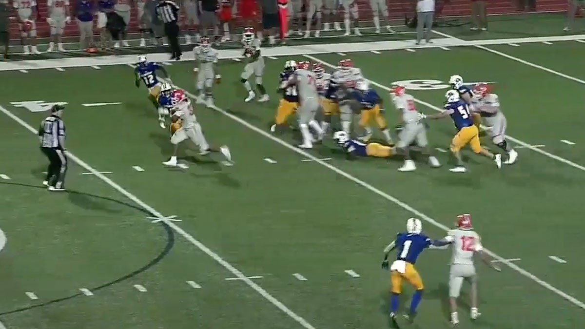 Starting at their own 16-yard line, San Angelo Central had work to do trying to answer the opening score with one of their own. Behind the arm and legs of QB #8 Malachi Brown, the Bobcats drove the ball deep into Clemens territory. Facing a 3rd and 5, Brown completed a pass to a Bobcat receiver, but the Bobcat had the ball stripped away by a Buffaloes defender. Schertz Clemens recovered, killing the Bobcats’ first drive.