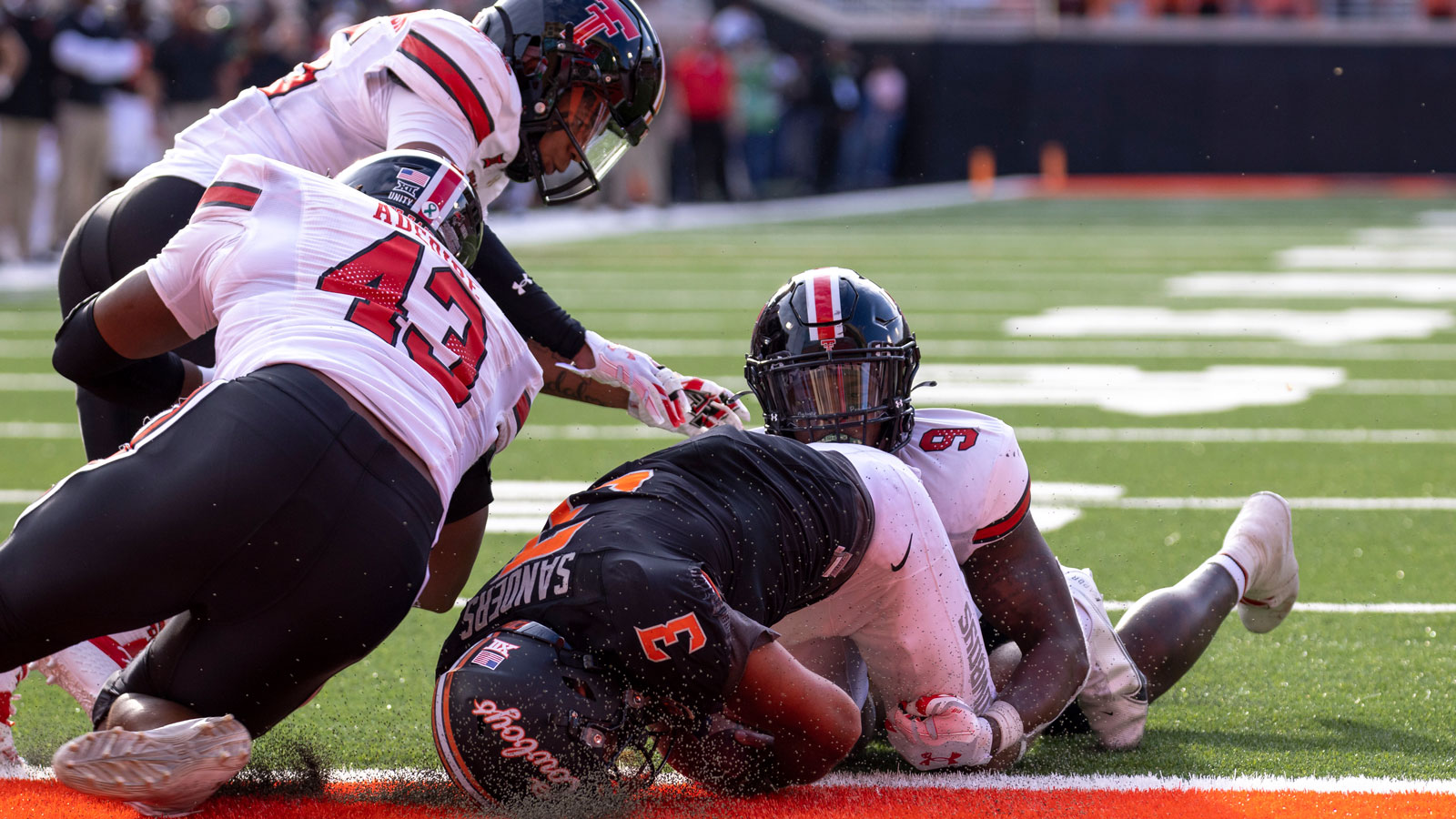 Both teams continued to trade scores throughout the first half, and the Red Raiders held a 24-20 advantage heading into the locker room at halftime. Texas Tech managed to maintain their lead heading into the 4th quarter after adding a touchdown. Morton drove the Red Raiders 65 yards down the field in seven plays to Oklahoma State’s 2-yard line. RB Sarodorick Thompson scored from two yards out and led the Cowboys 31-24 with 8:42 remaining in the 3rd quarter.