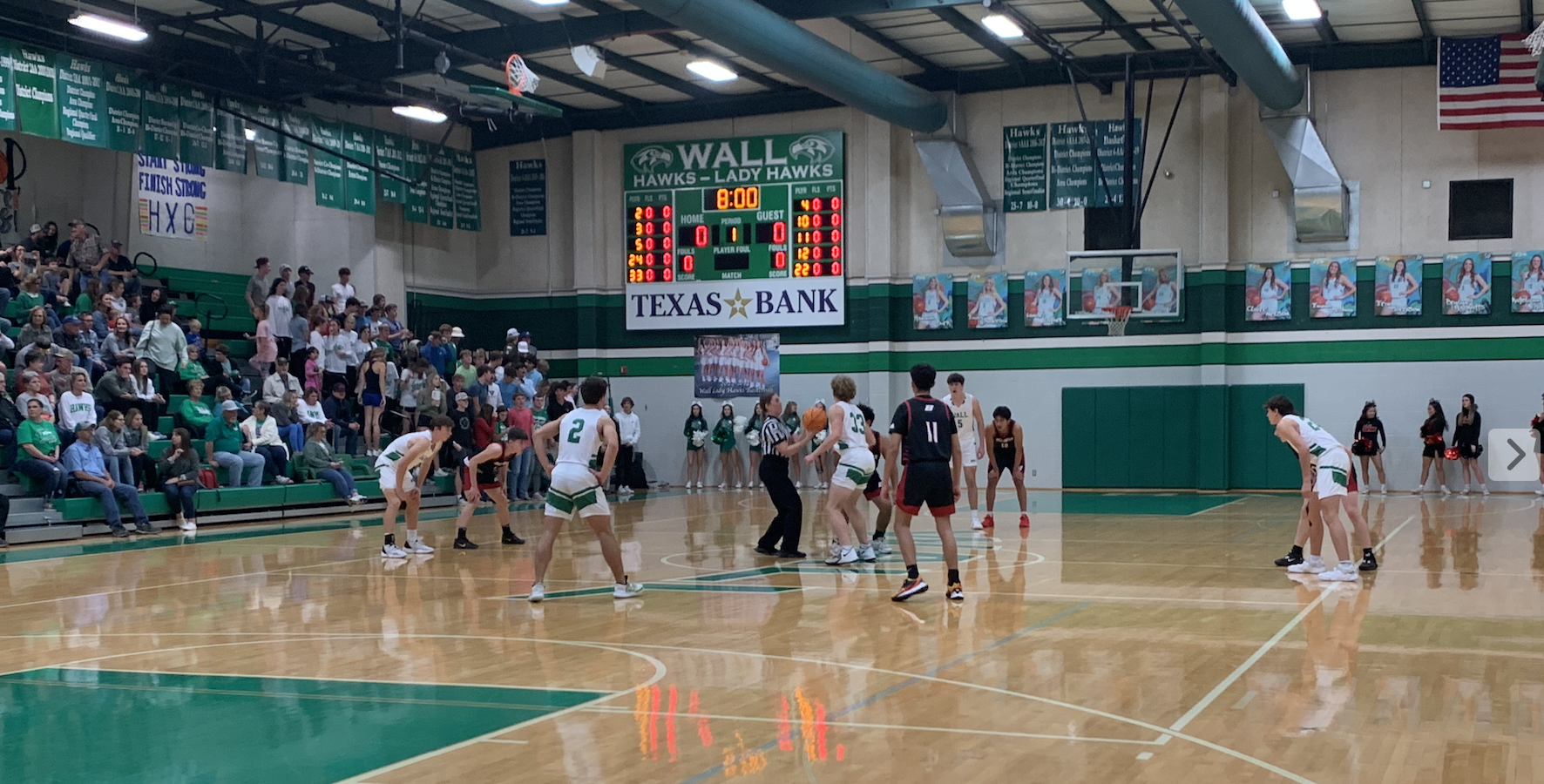 WALL, TX — The Wall Boys and Girls Varsity Basketball teams saw district action against the Ballinger Bearcats on Friday, Jan. 6, at Wall High School in Wall. The no. 9 ranked Lady Hawks played the early game and, despite turnover issues for much of the second half, secured victory 40-27. The Boys followed after and dominated Ballinger throughout their entire contest. The Hawks move to 3-0 in their district with a 53-23 victory.
