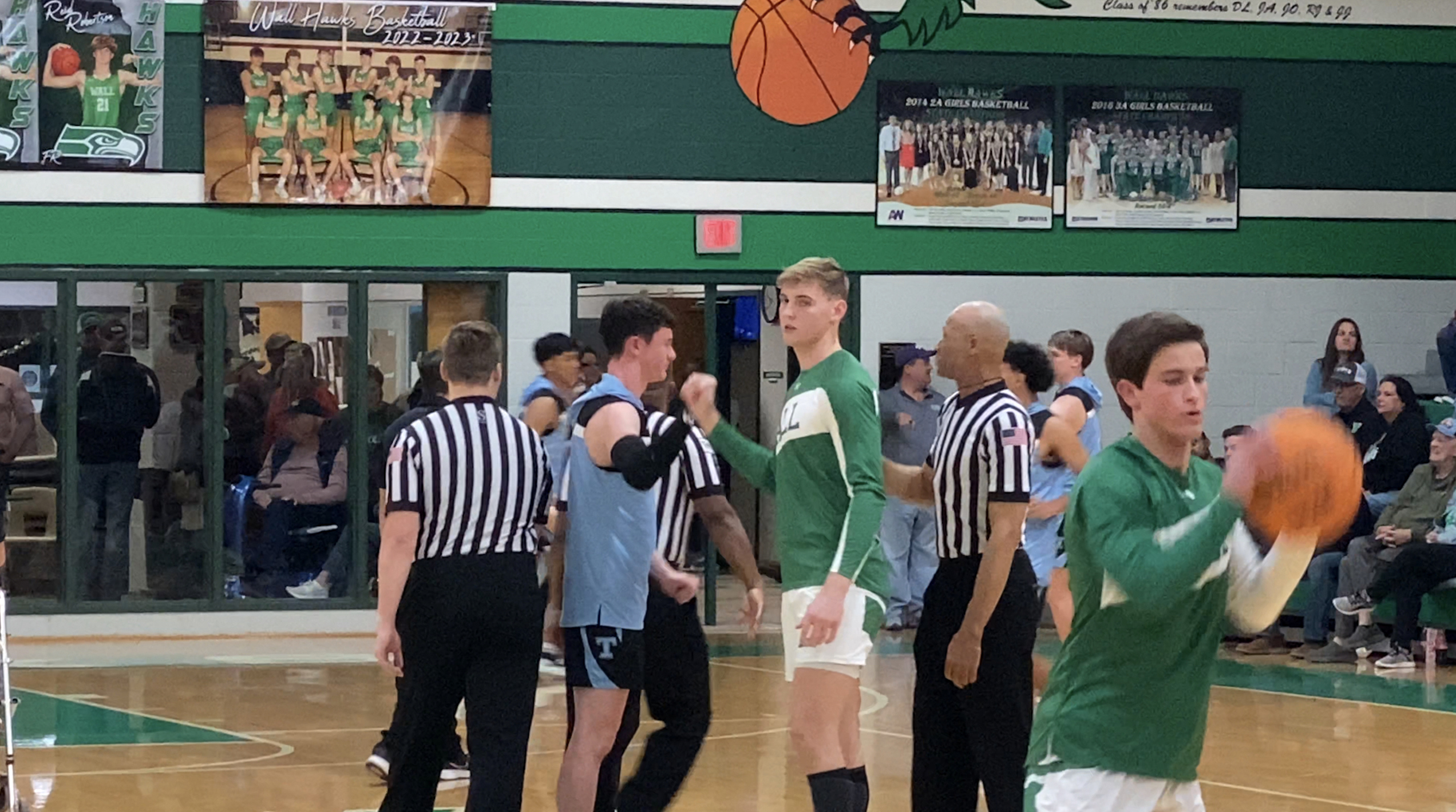 After the Lady Hawks earned the win, the boy’s teams took to the hardwood in a thrilling district matchup. Both teams were tied for first place with Jim Ned in district and TLCA blacked out the entire visitor side of Wall’s gym.