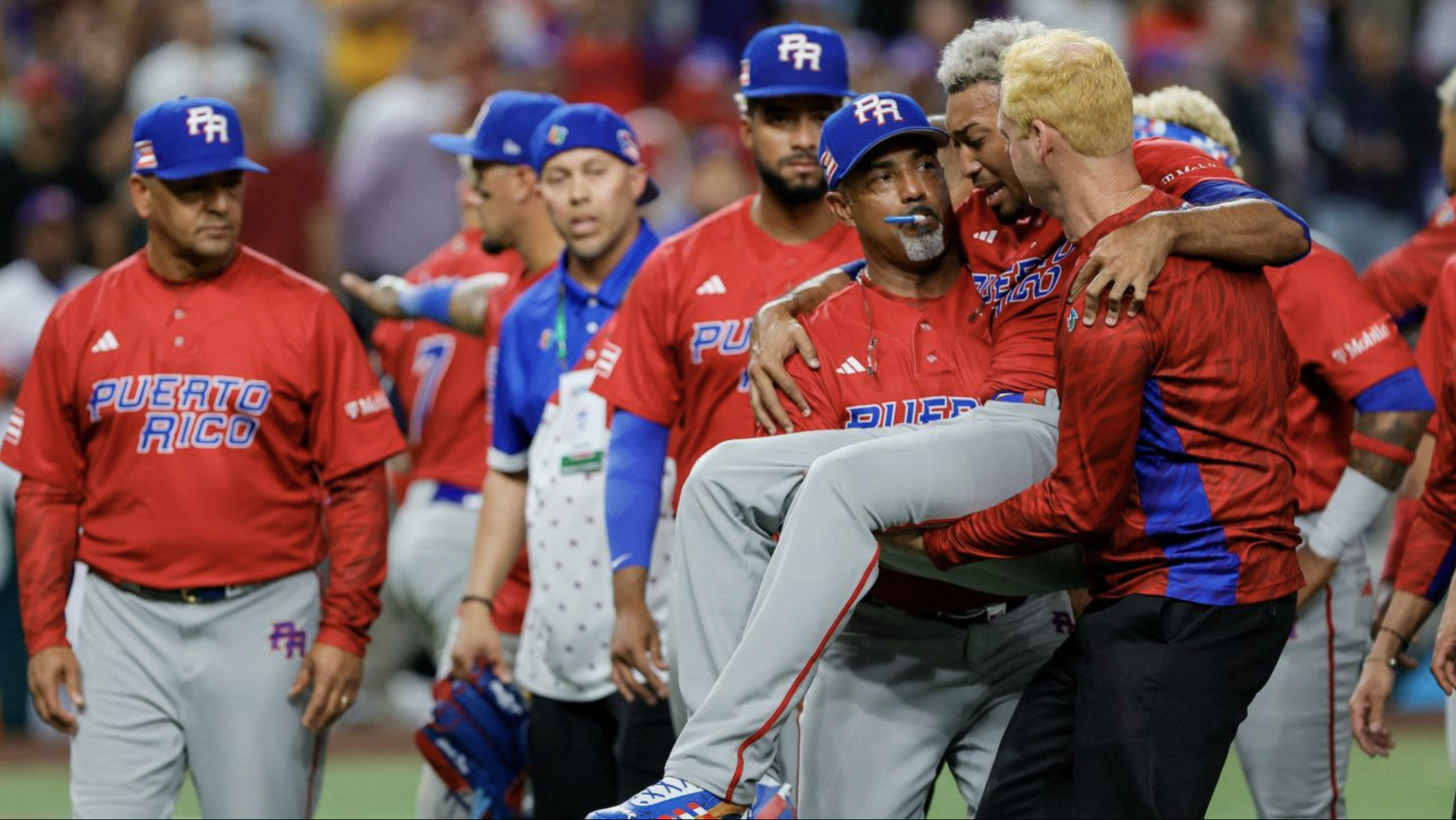 MIAMI, FL — A celebratory moment turned sour on Wednesday, March 15, as Puerto Rico’s National Team celebrated their 5-2 victory over the Dominican Republic in the World Baseball Classic.