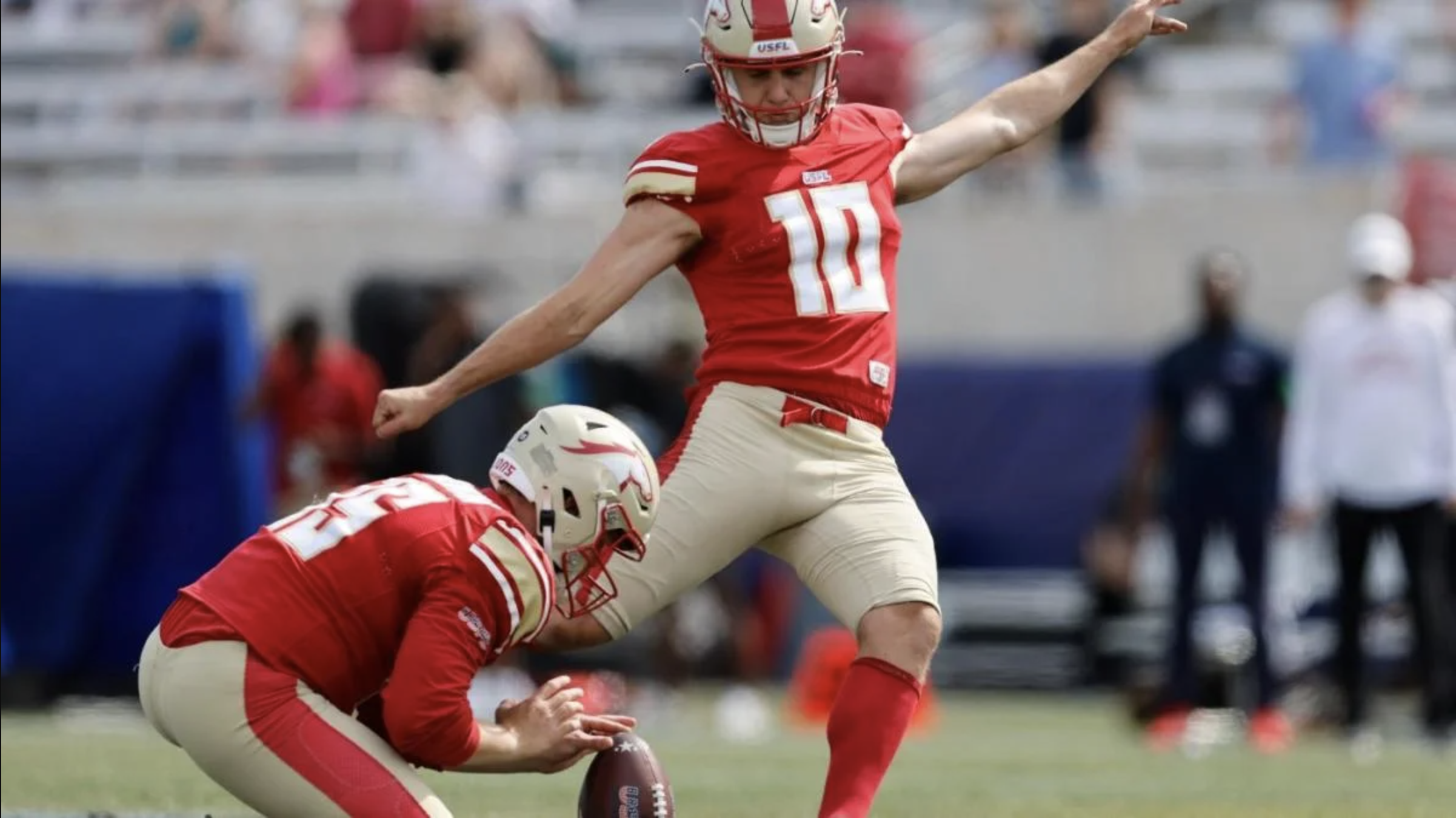 FRISCO, TX — After an abysmal post-season from former Dallas Cowboys Kicker Brett Maher, the Cowboys finally added another kicker to the roster on Thursday. Dallas signed Brandon Aubrey, a USFL standout who spent the last two seasons with the Birmingham Stallions. Maher missed five extra point attempts in the playoffs a season ago, prompting Dallas to explore other options in the kicking game.