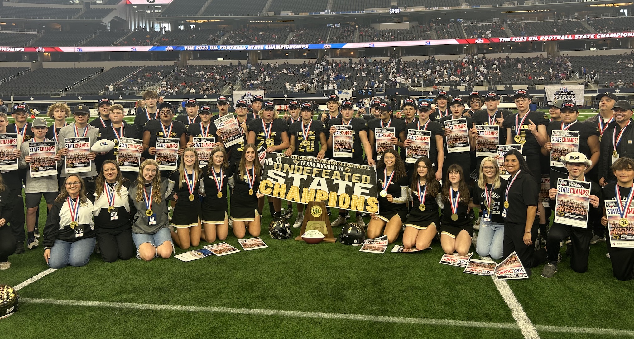 ARLINGTON, TX — The 2023 Texas High School Football State Championships kicked off on Wednesday, December 13, with the Six-Man Division I matchup between the Westbrook Wildcats (13-1) and the unbeaten Gordon Longhorns (14-0). Explosive plays and strong defense defined the day for the Longhorns as Gordon slowly pulled further away from the Wildcats throughout the first half. The Longhorns proved too much for Westbrook as Gordon won this one early, 70-20.