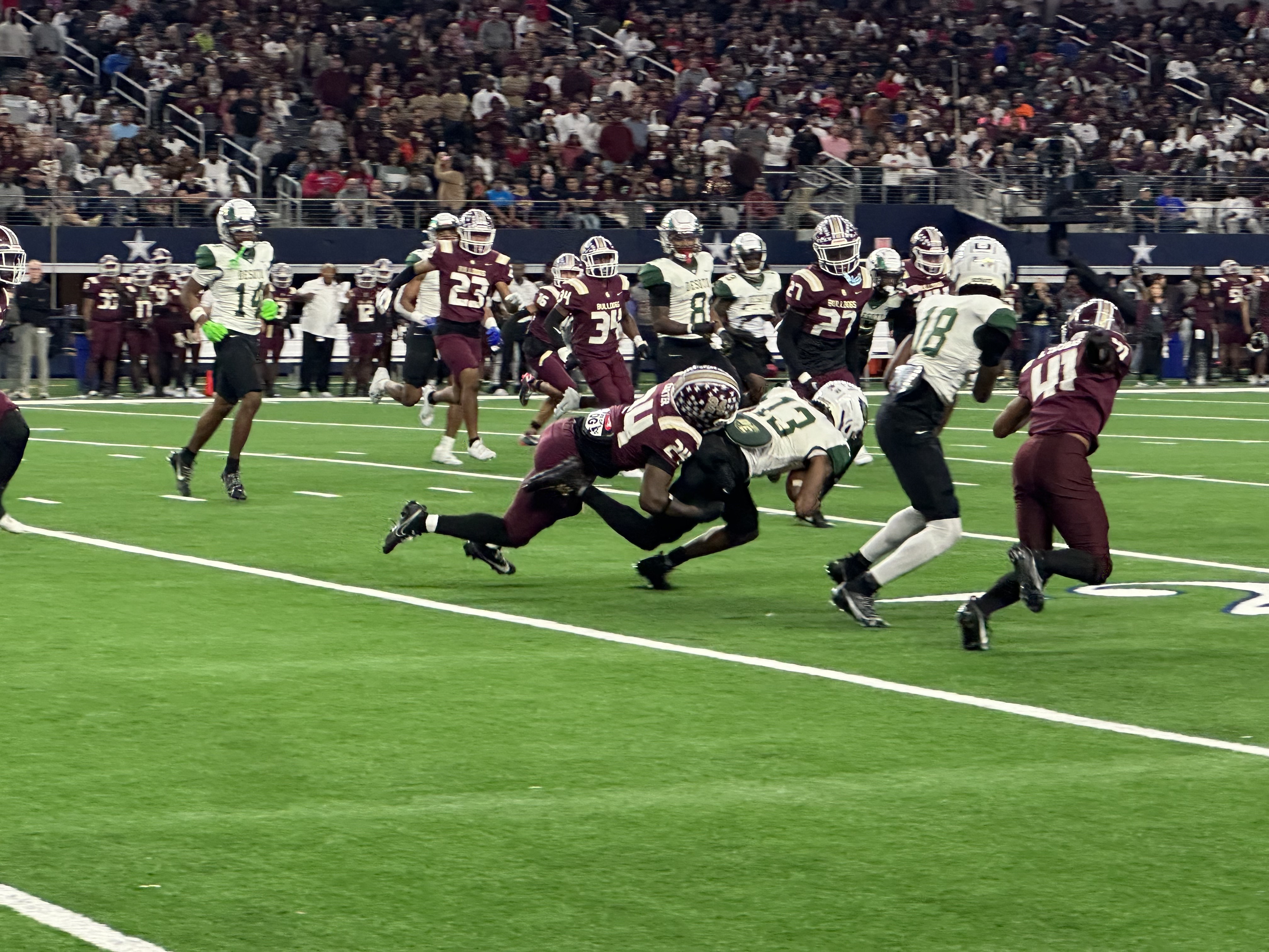 ARLINGTON, TX — The final game on Day 3 in the 2023 Texas High School Football State Championships on Saturday, December 16, featured two powerhouses hoping to bring home one final victory for their schools. The DeSoto Eagles and Summer Creek Bulldogs squared off for a chance at a state championship.