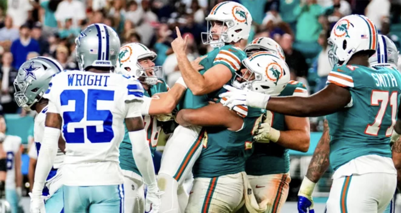 MIAMI, FL — A 4th quarter comeback fell short on Sunday when the Dallas Cowboys narrowly fell to the Miami Dolphins 22-20. Dolphins’ kicker Jason Sanders nailed a 29-yard field goal as time expired to lift the ‘Fins over the Cowboys at Hard Rock Stadium.