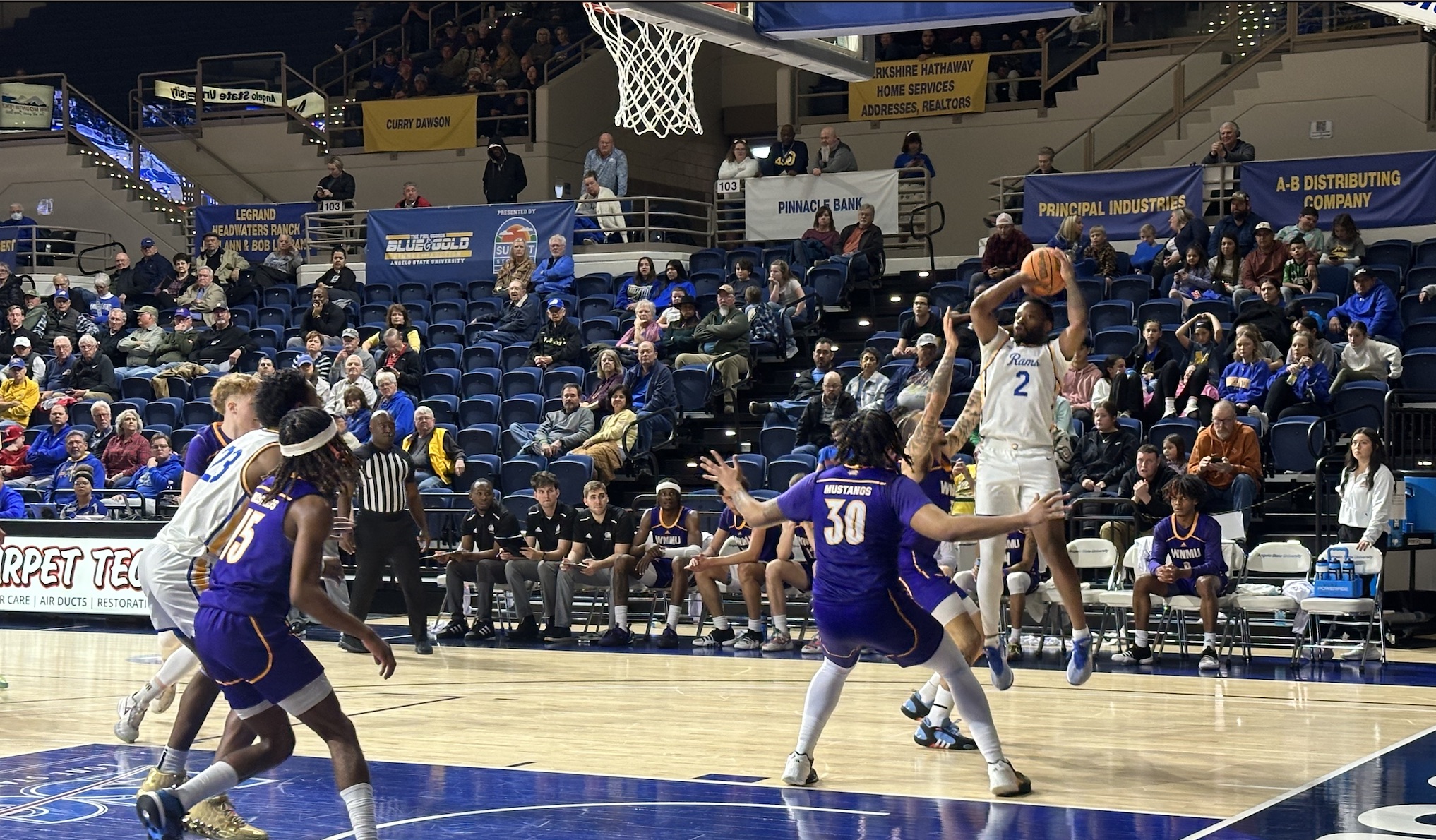 SAN ANGELO, TX — The No. 11 Angelo State Rams (11-1)(6-0) hosted a Lone Star Conference matchup against the Western New Mexico Mustangs at the Junell Center on Thursday night. After a slow start put the Rams behind the ball in the first half, disciplined defense and a hot hand in the second extended Angelo State’s win streak to ten games in the 77-64 win.