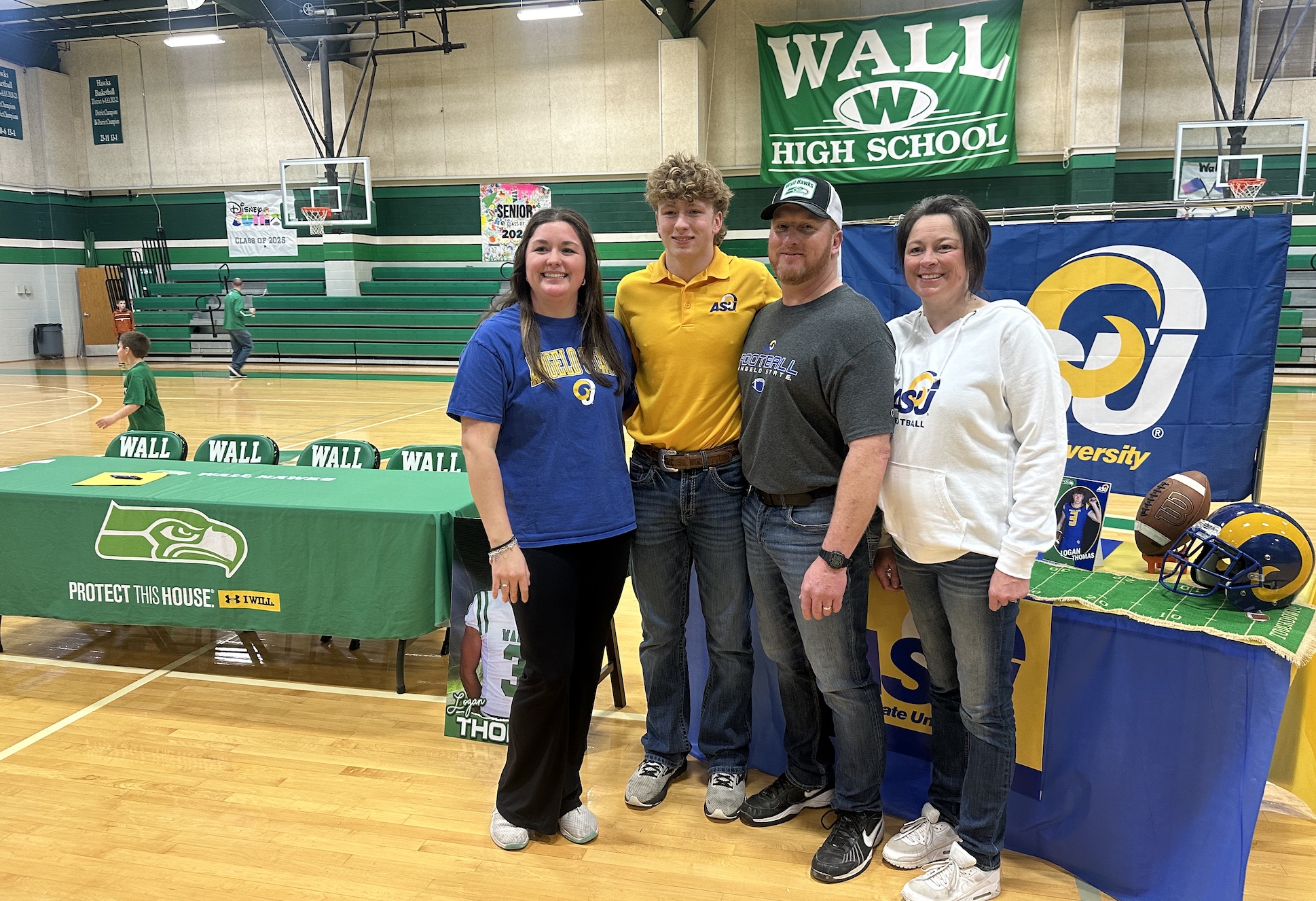 Friends, Family, Coaches, and others gathered at Wall High School on Wednesday, February 7, to celebrate Thomas as he signed his letter of intent with the Rams. The young man joins a talented roster and a perennial national title contender next season.