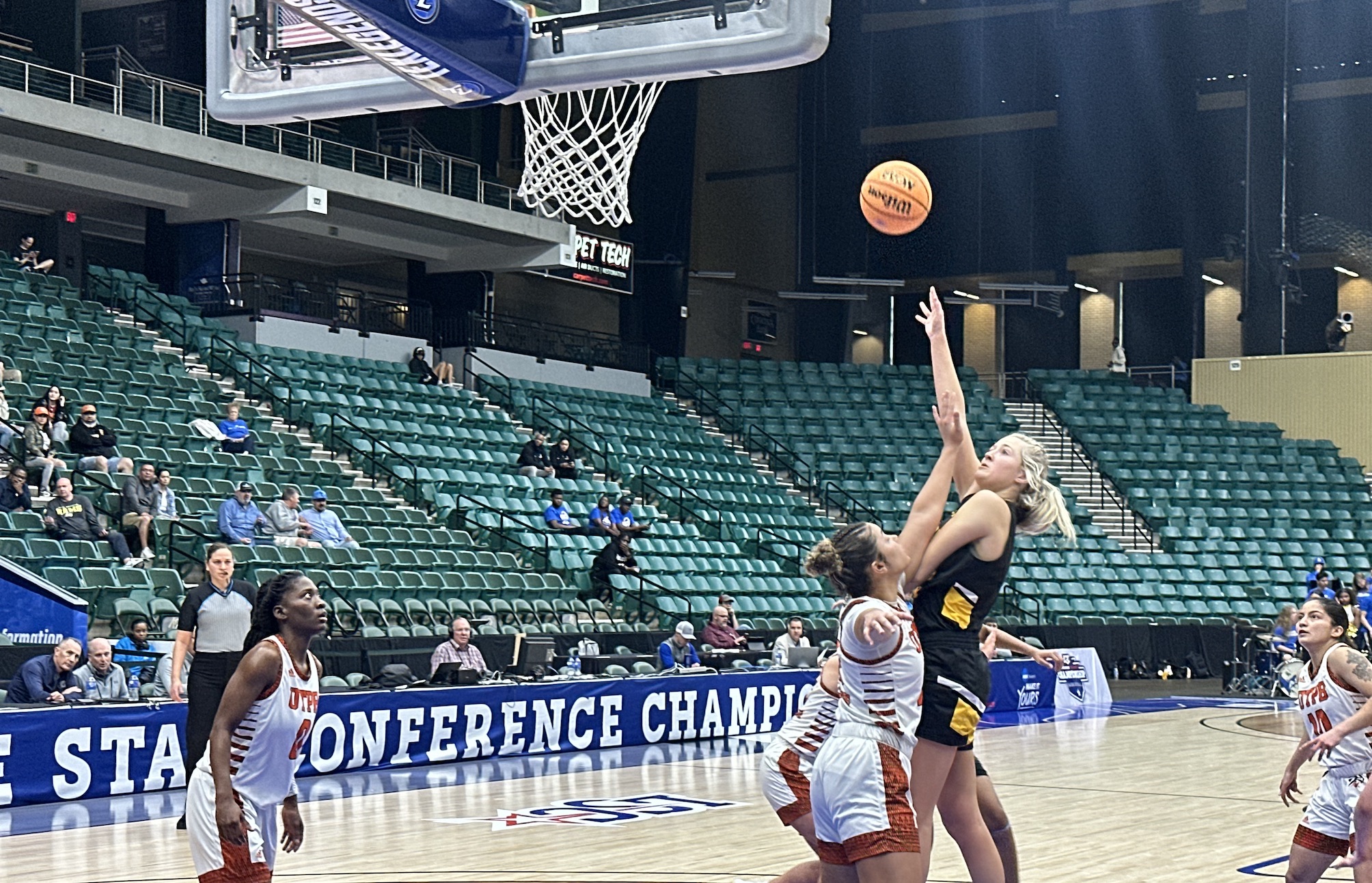 FRISCO, TX—The Angelo State Belles traveled to Frisco to play in the 2024 Lone Star Conference Tournament at the Comerica Center. In the quarterfinals, the Belles faced off with the University of Texas Permian Basin at 12 p.m. on Friday, March 8. Faced with an incredibly stalwart defensive performance from UTPB, the Belles had an off-shooting performance and fell 71-51.