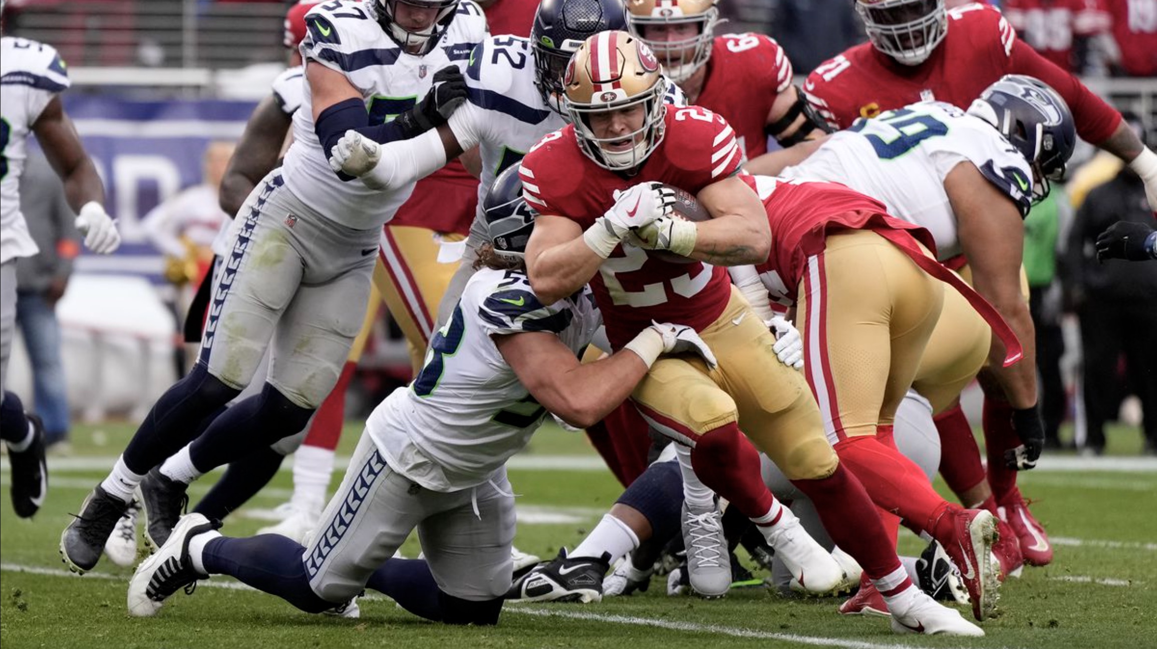 McCaffrey finished last season with 2,023 yards from scrimmage and tied with Raheem Mostert for a league-leading 21 touchdowns.