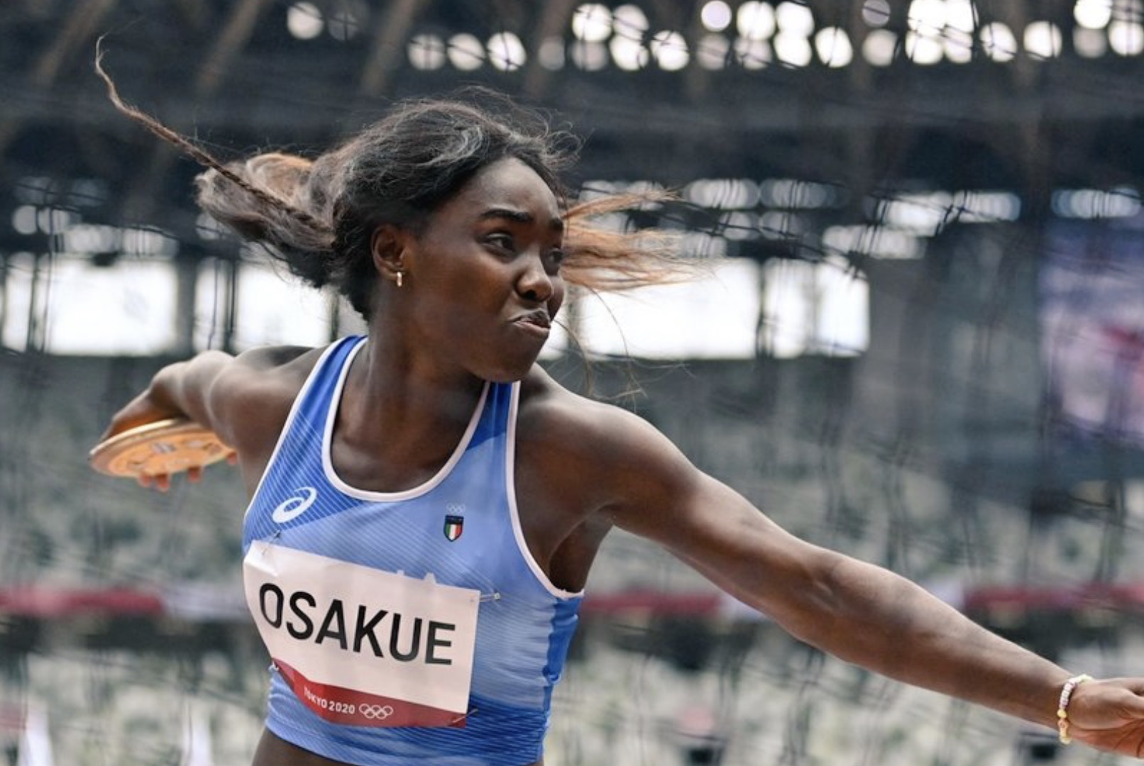 Osakue, representing Italy, matched her throw of 63.11 meters (207 feet, 0.75 inches) from qualifying to move up one spot in the finals.