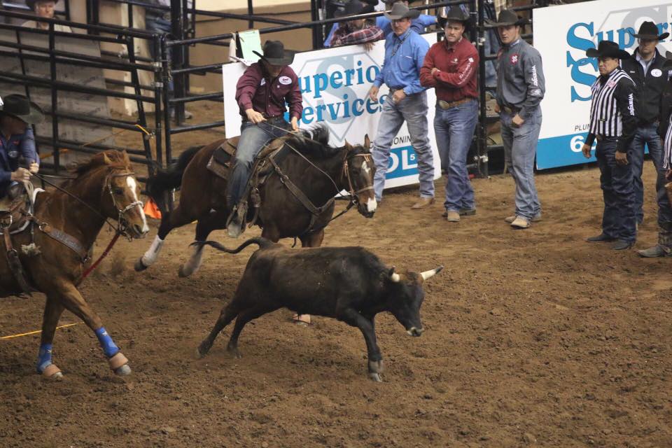 Riding Sam Mason’s mare Baby, Waguespack also placed in the first round, knocking down his opening-round steer in 3.6 seconds to finish in a tie for fifth with Montanan Bridger Chambers; that was worth more than $2,700. With that, Waguespack shares the average lead with Brown with two-run cumulative times of 6.4 seconds.