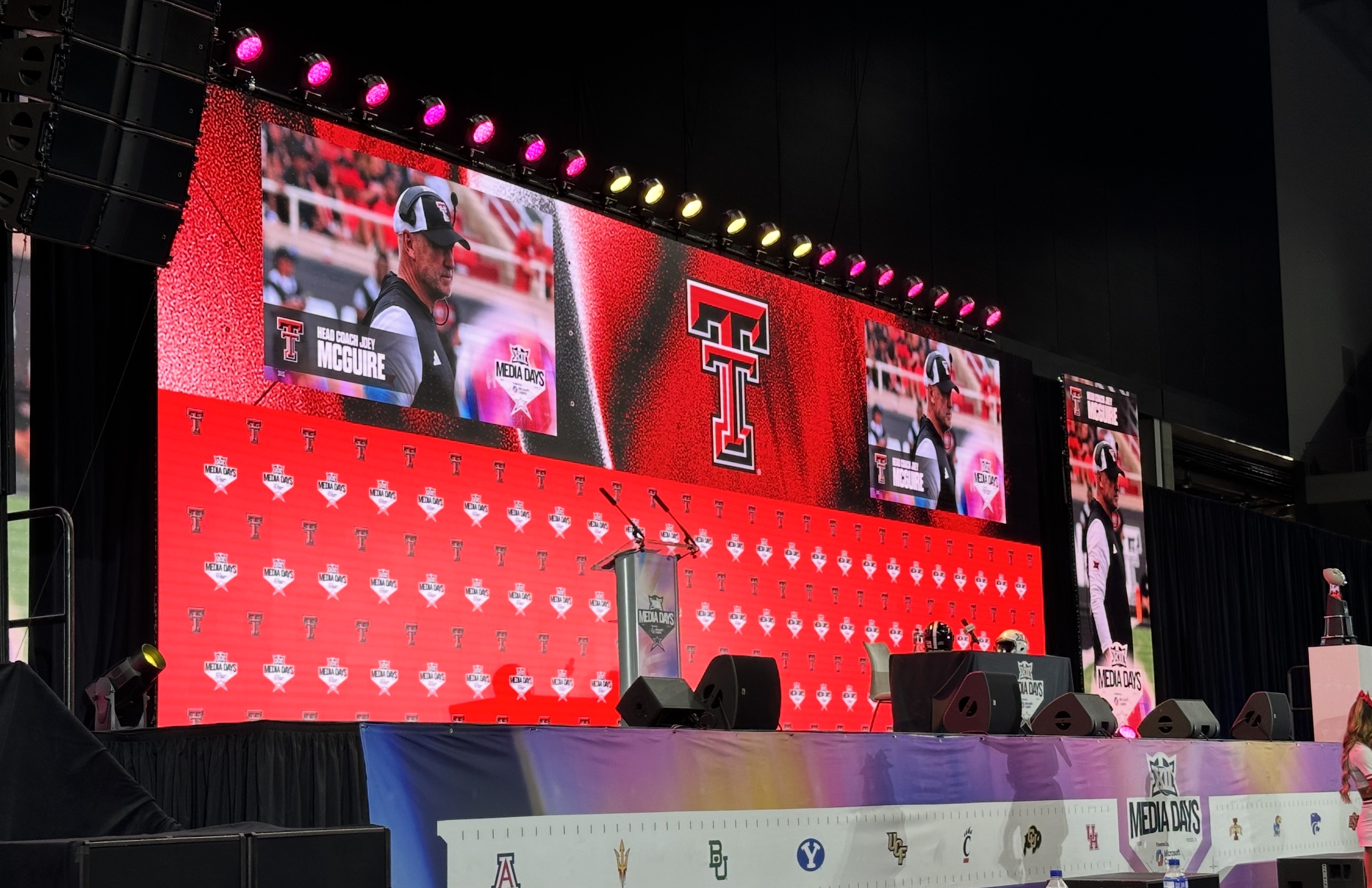 FRISCO, TX — The Big 12 Conference held its annual football Media Days at the Star in Frisco on Tuesday, July 8. Texas Tech head coach Joey McGuire gave his thoughts on his football team ahead of the season, as well as answering questions directly from the media.