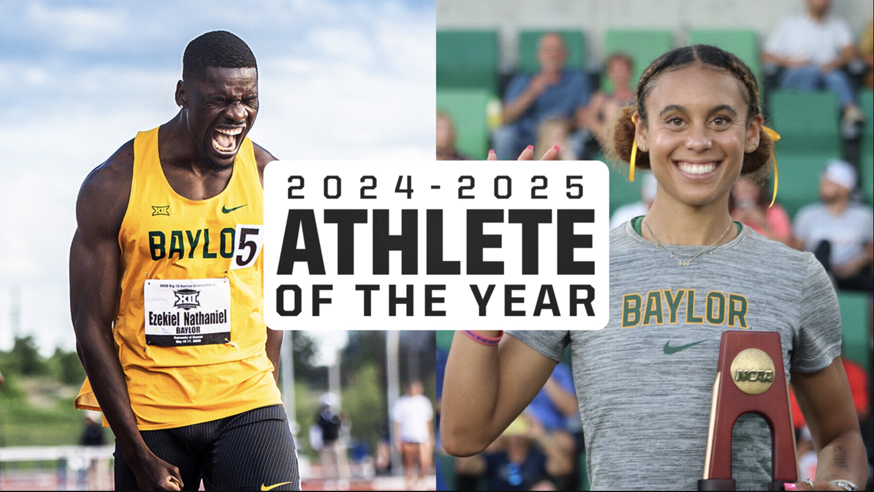 WACO, TX — Baylor University’s Nathaniel Ezekiel and Alexis Brown have been selected as the school’s nominees for the 2024-25 Big 12 Athlete of the Year award, the conference announced Tuesday.