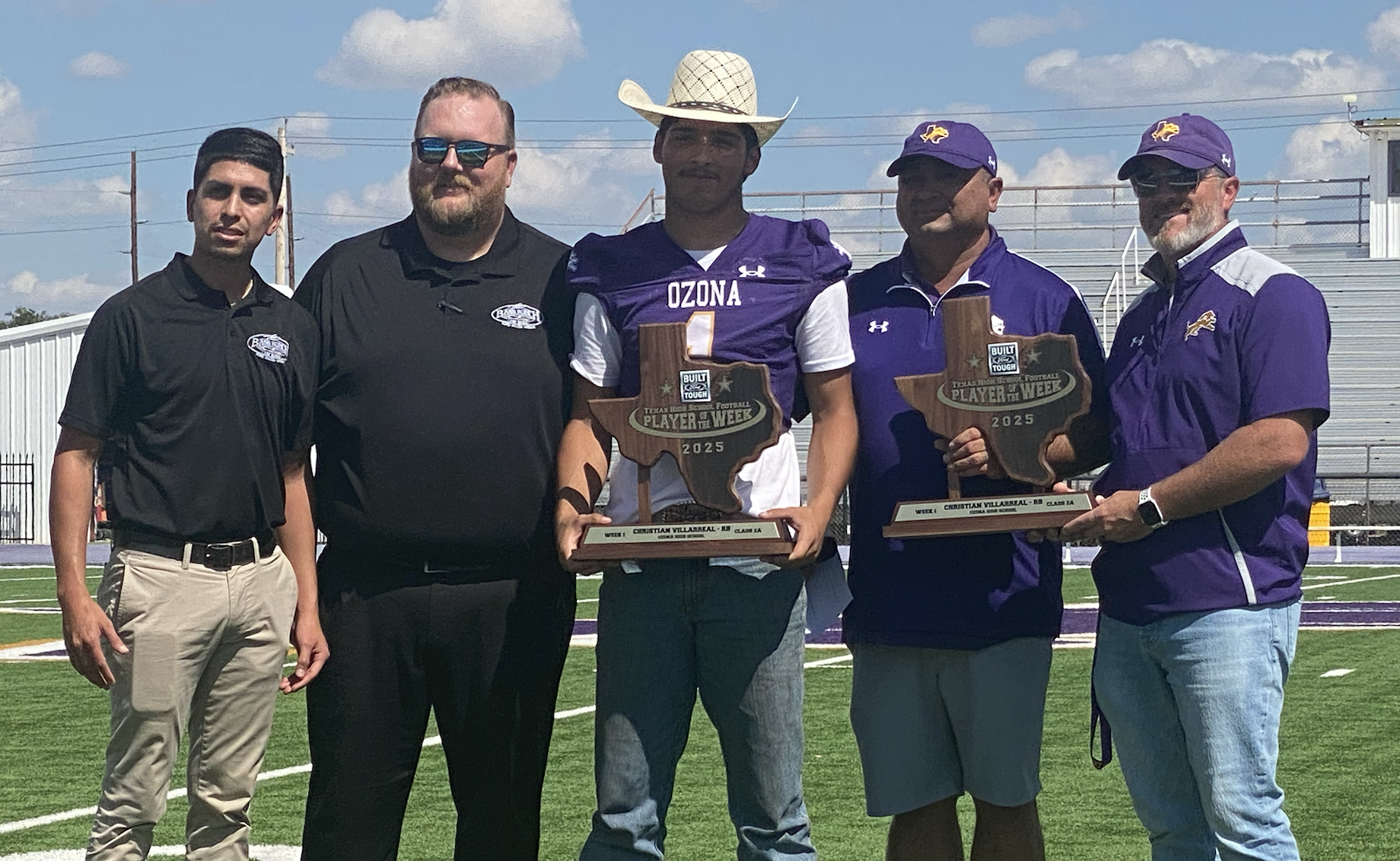 OZONA, TX — Ozona standout running back Christian Villarreal received a statewide honor for the second time Friday when he was presented with the Build Ford Tough Class 2A Player of the Week award during a ceremony at Ozona High School