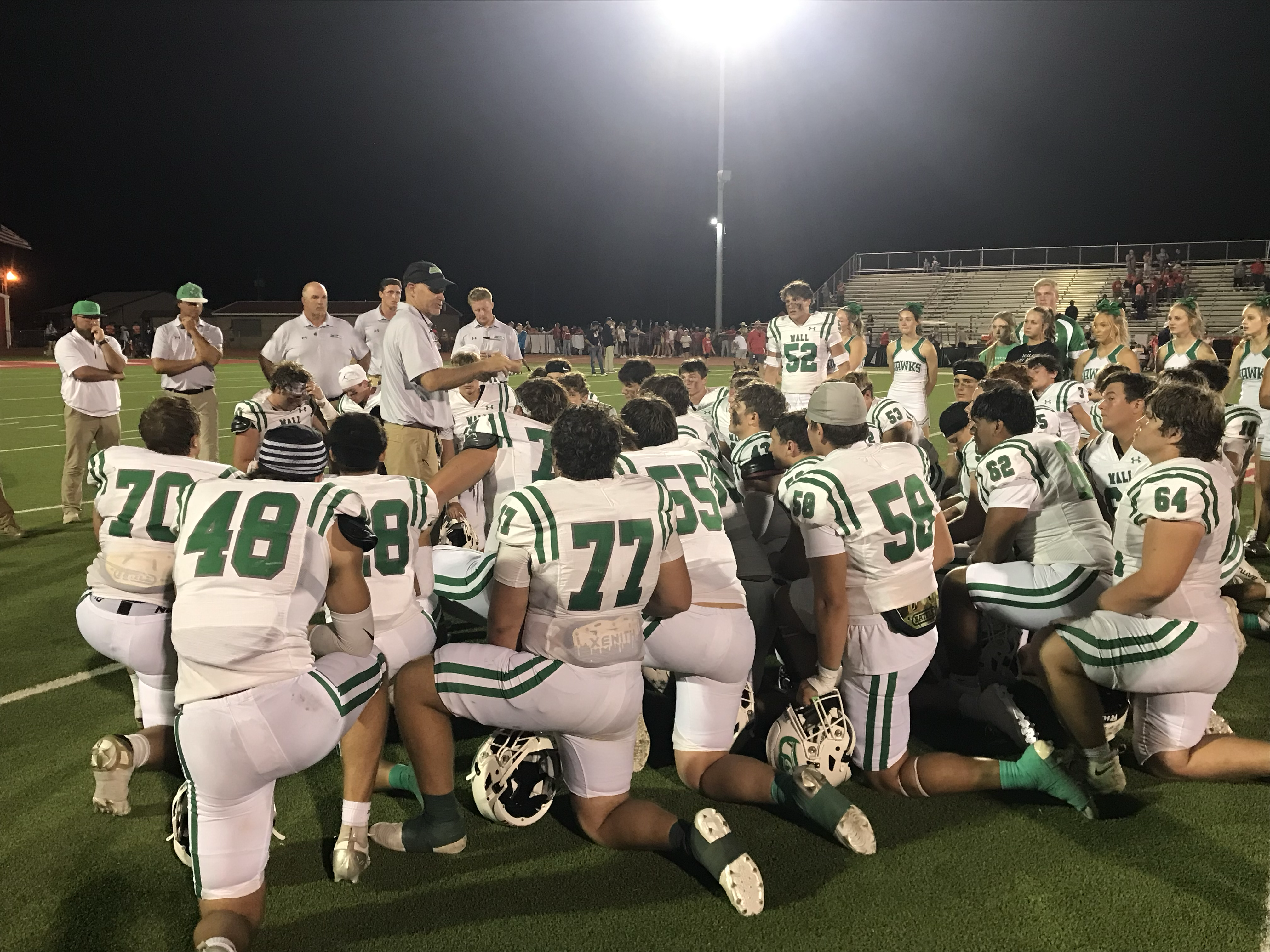 The game was tied 14-14 at halftime, and Wall had only a 21-14 lead heading into the fourth quarter.