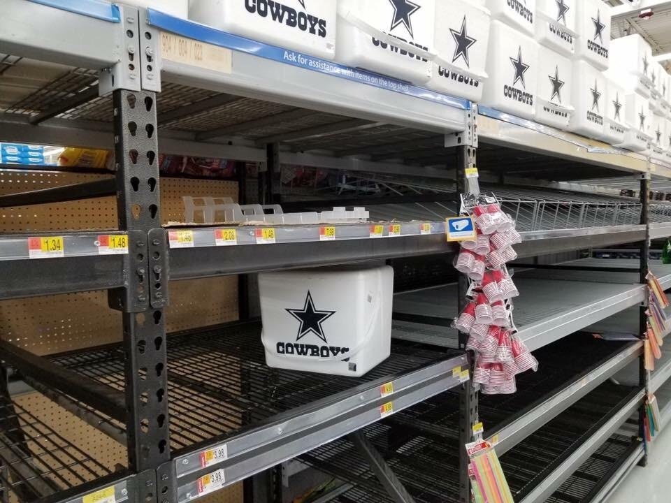 At a Houston Wal-Mart today, all of the coolers were gone from shelves except the ice chests branded with the Dallas Cowboys. Amjad Ismail, proud Houston Texans fan, tweeted the photo above. As of Aug. 25 at 11:15 p.m., the post was re-tweeted 6,400 times and “Loved” by 12,000 Twitter users.