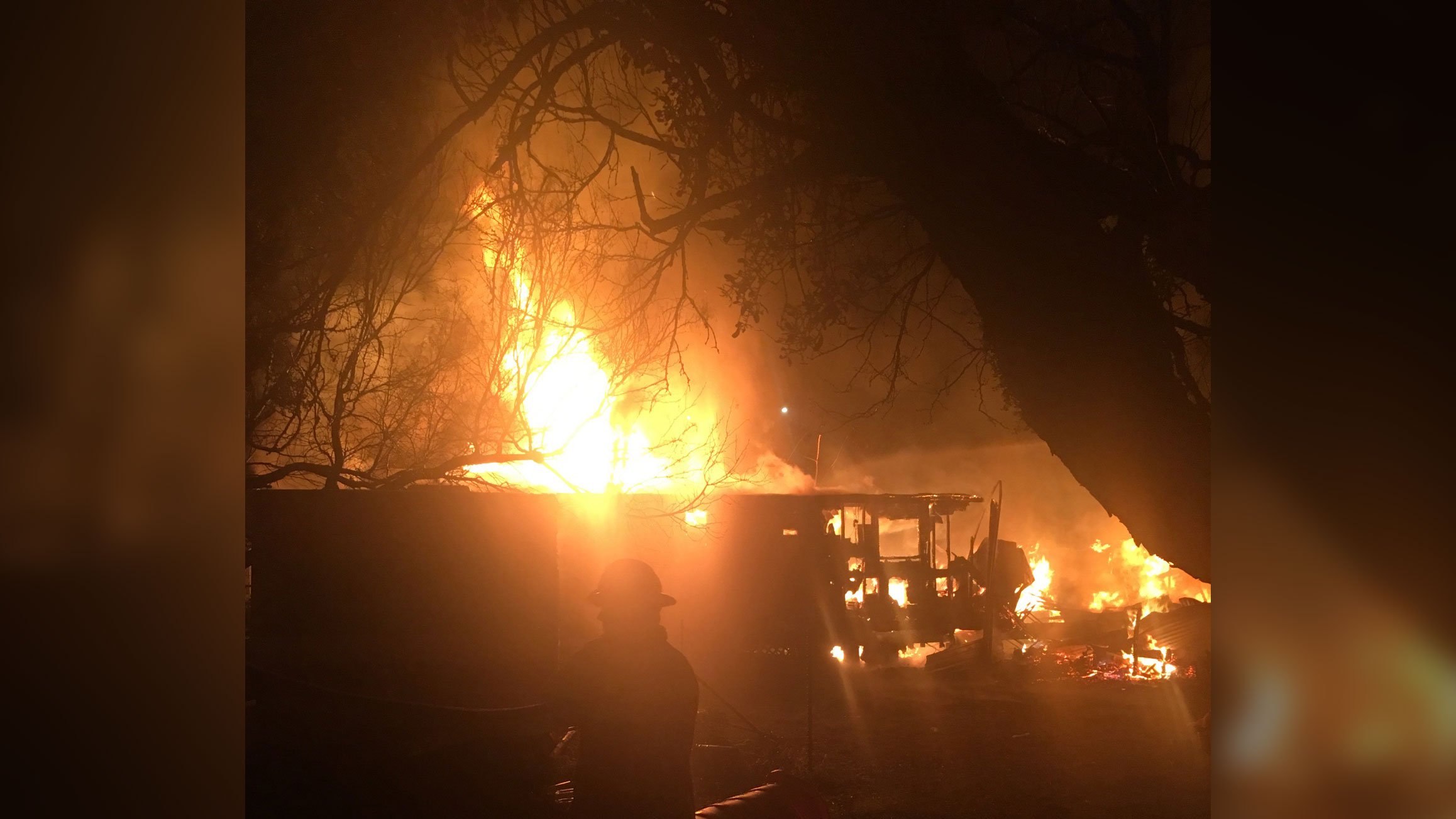Chief Davis said it took two hours to knock down the flames. The firefighters didn’t leave the scene until 12 hours later, at 3 p.m. Sunday. While the large propane tank was a worry outdoors, as the firefighters doused the flames, two very loud explosions went off inside the some. Then, Reba said, they heard ammunition go off. “Thankfully, the ammo was stored in a fireproof safe inside the trailer,” she said.