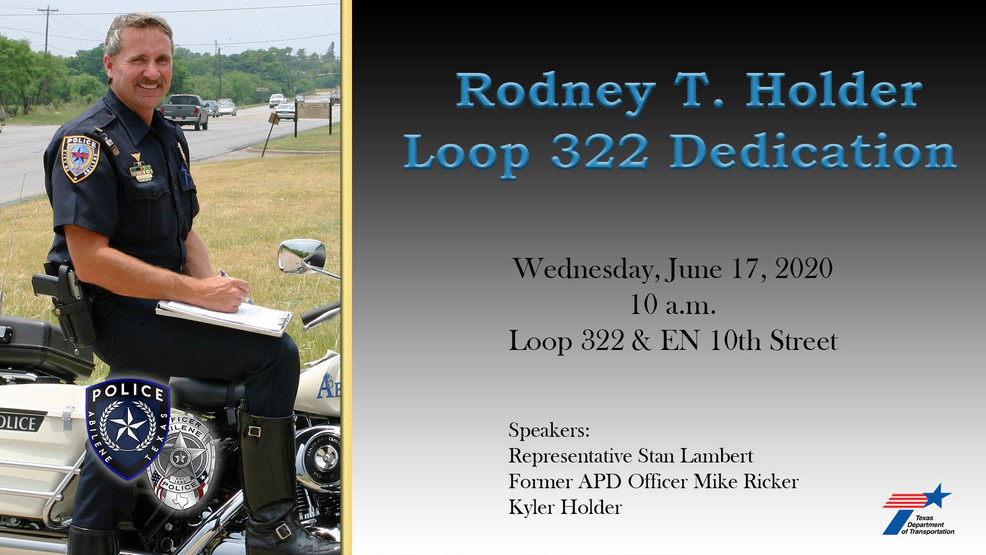 ABILENE, TX — After House Bill 23 was approved last June, Loop 322 in Abilene will be rededicated to honor Officer Rodney T. Holder of the Abilene Police Department.