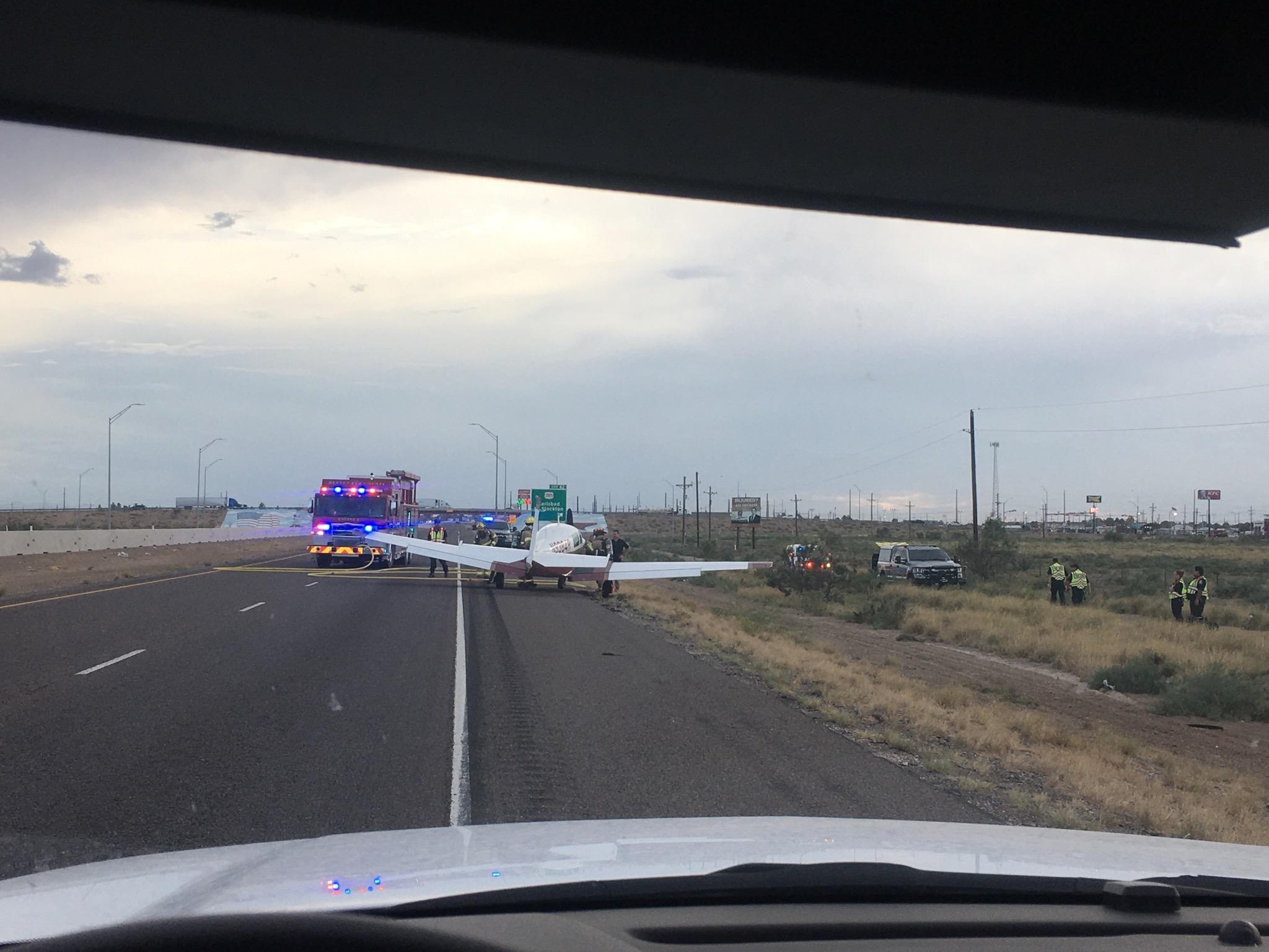 The pilot, Adam Streeter, 52, advised Albuquerque Air Traffic Control that he would be landing between a truck tractor pulling a semi-trailer and a dually pickup in the westbound lanes of I-20. The plane came to a full stop at about mile marker 42 on I-20, the sheriff said.