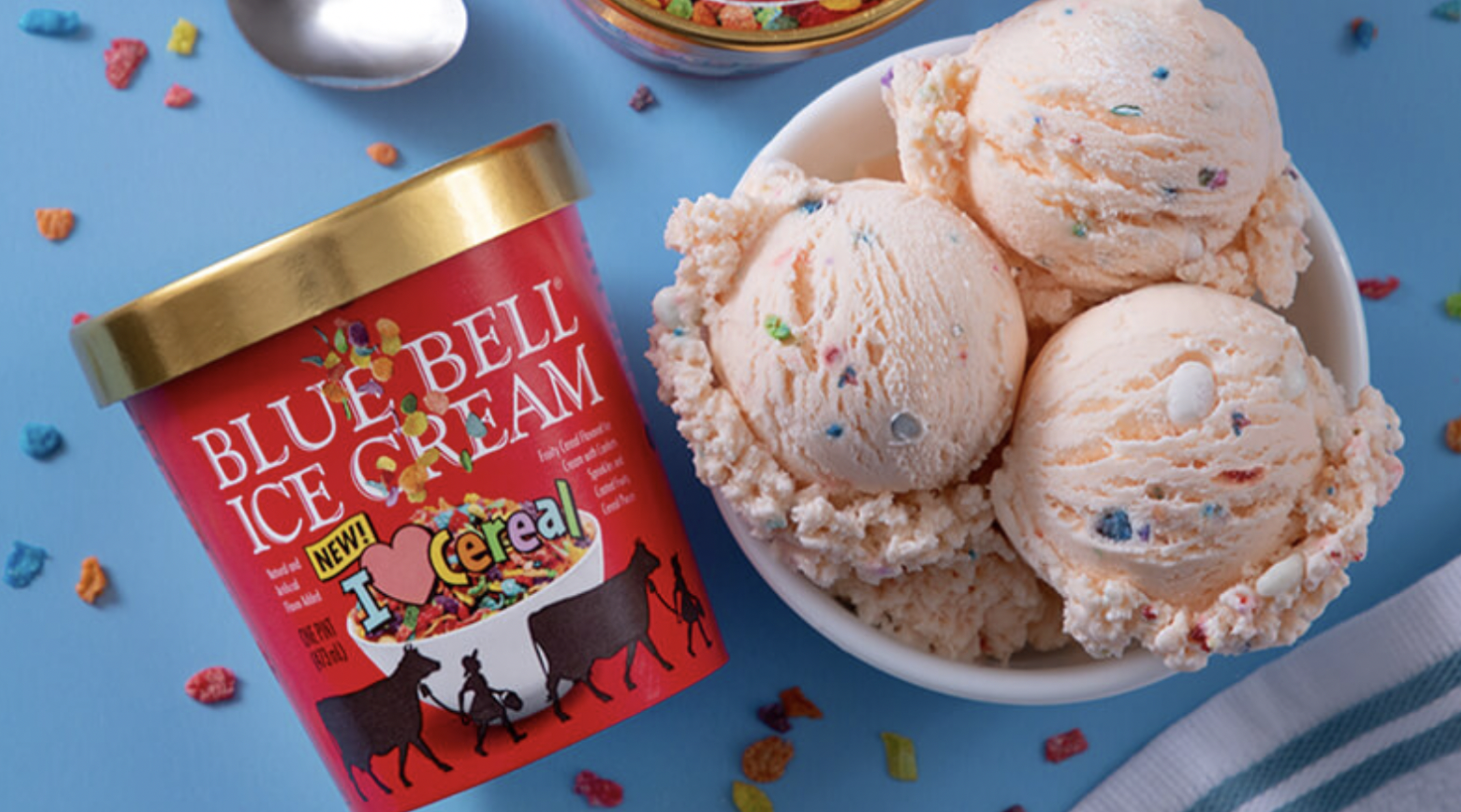 What better way to start your day than with an ice cream inspired by cereal,” said Carl Breed, Blue Bell general sales manager. “It is a great combination of two popular foods. Our new I ❤️ Cereal is a mixture of vanilla ice cream to represent the milk, and fruity cereal pieces just like you would enjoy in your bowl for breakfast.