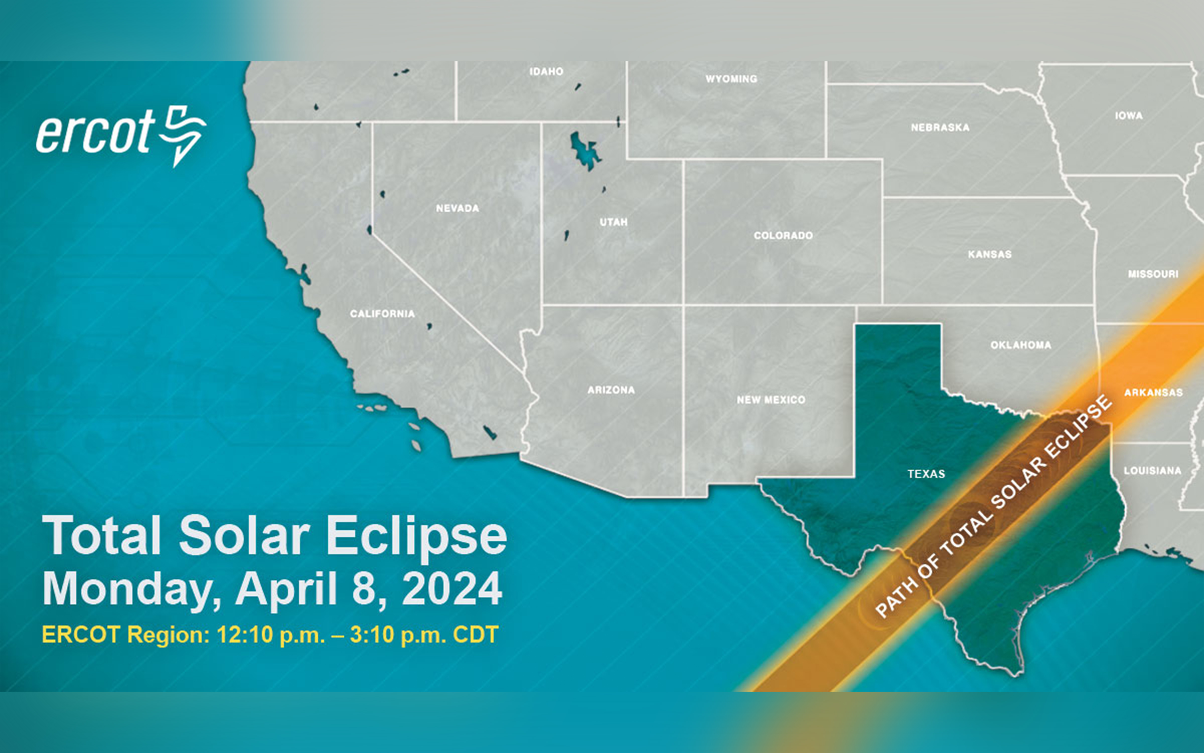 ERCOT states that Texas solar farms in the path of the April 8 eclipse will see a drop in production.