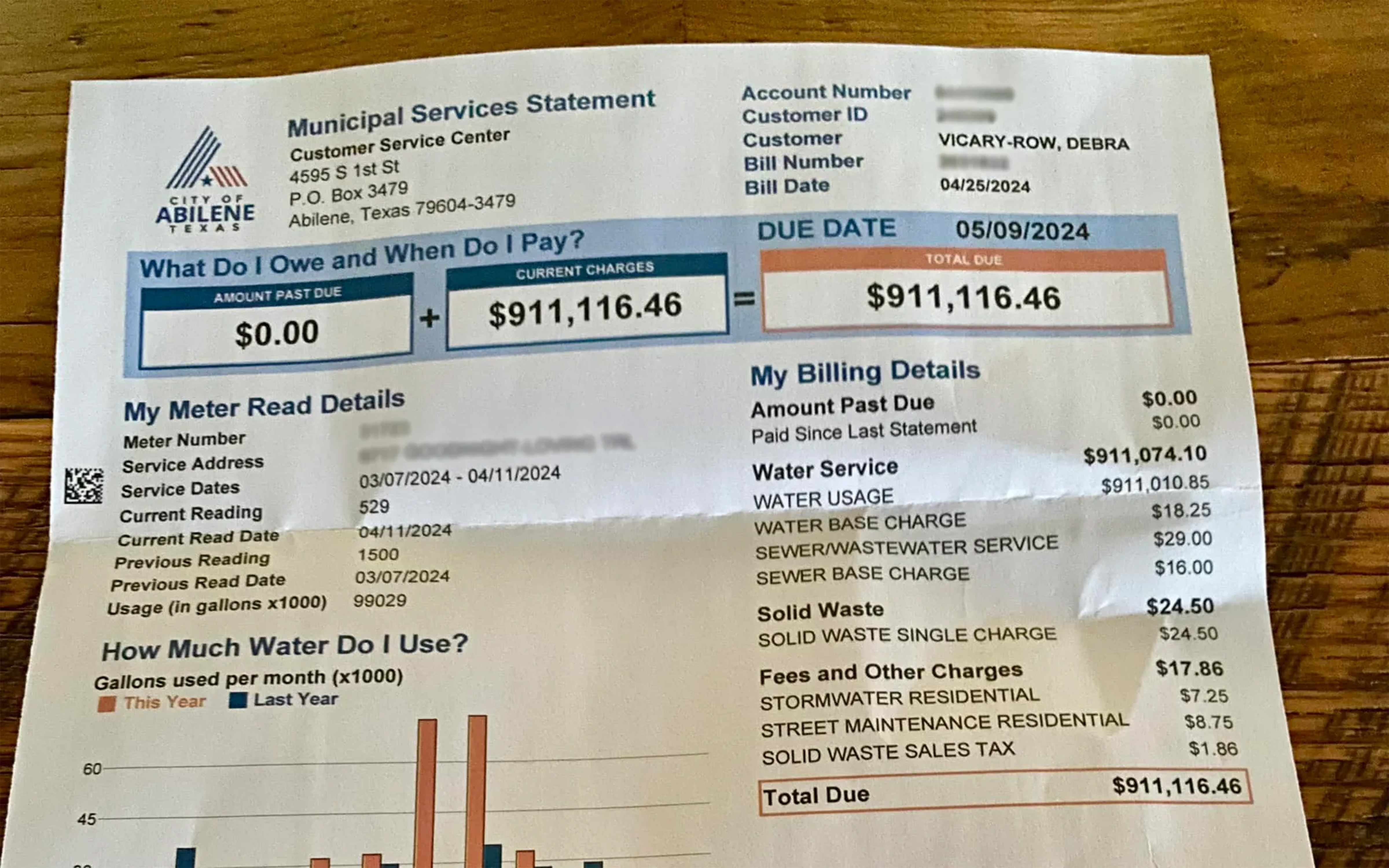 Abilene Woman Hit with Nearly $1 Million Water Bill