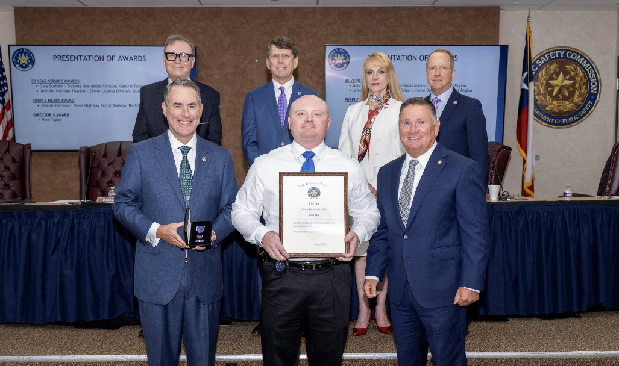 The honor was awarded during the August meeting of the Public Safety Commission by Chairman Stephen P. Mach, Commissioners Nelda Luce Blair, Dan Hord, Larry Long, and Steven Stodghill, and DPS Colonel Freeman F. Martin.