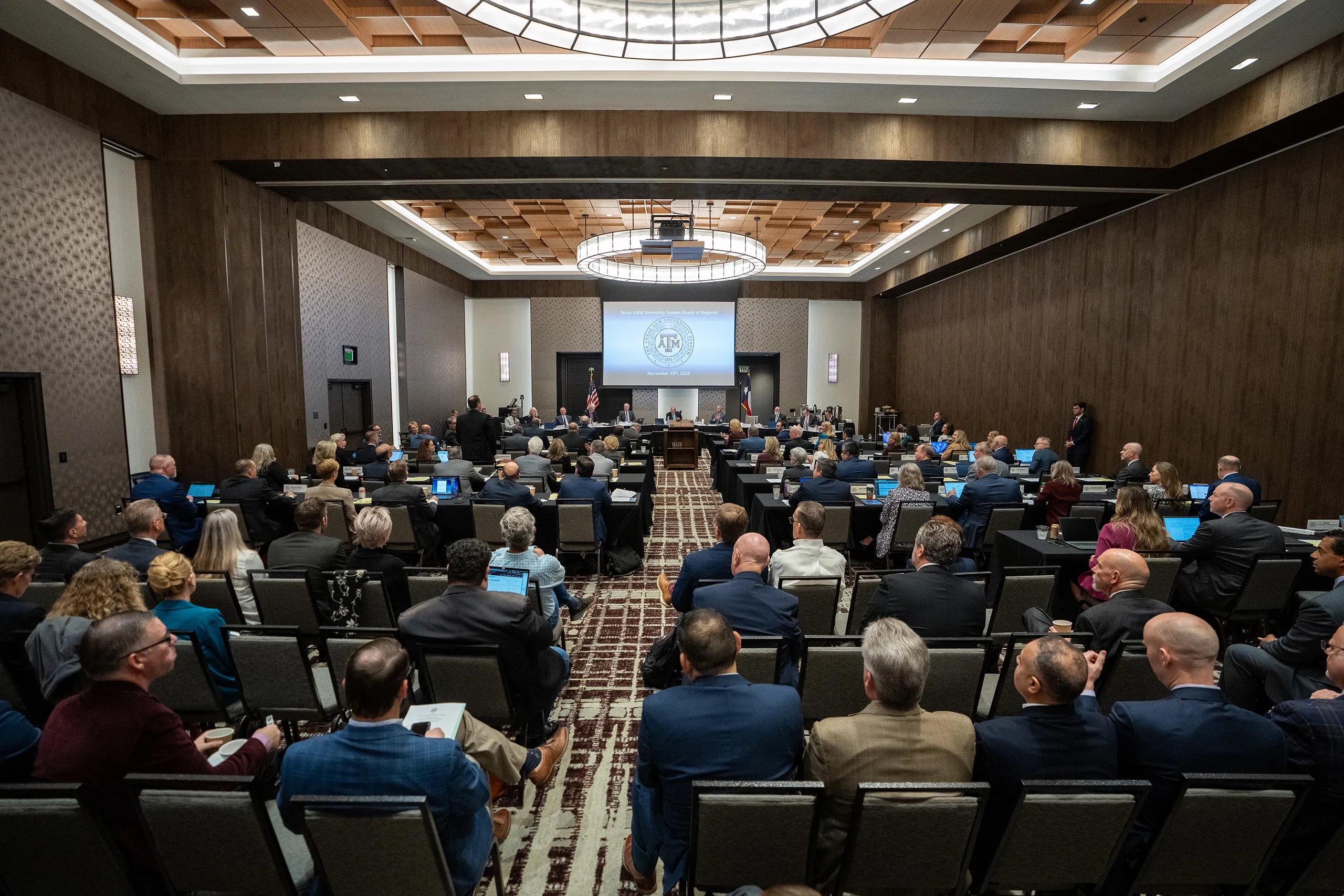 Assistant Professor Miranda Sachs speaks during a public comments segment during an afternoon Texas A&M University System Board of Regents meeting the Texas A&M Hotel and Conference Center in College Station on Thursday, Nov. 13, 2025.