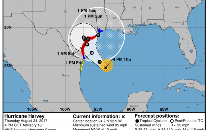 Forecasters: Harvey will be a Category 3 Hurricane at Landfall Friday Night